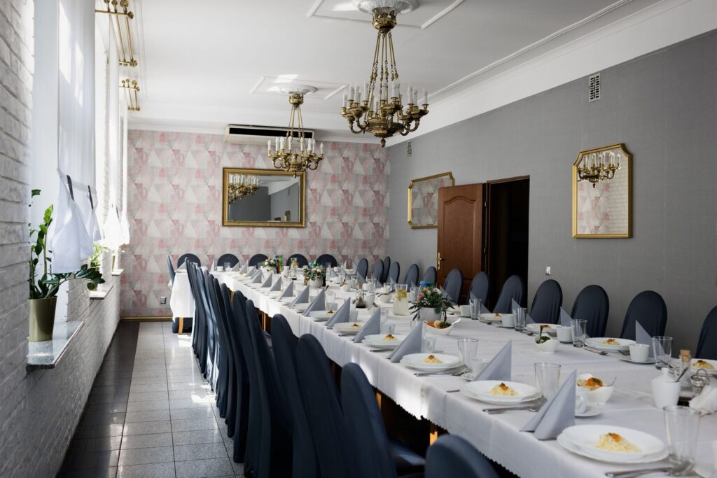 Zapraszamy Państwa do skorzystania z naszych nowoczesnych, klimatyzowanych i wytwornie urządzonych sal restauracyjnych.